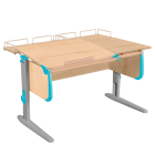 Парта Дэми СУТ-25-01 120см раздельная с задними приставками белый/аквамарин/бежевый каркас