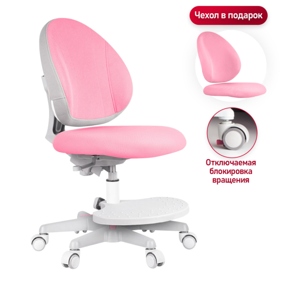 Отличное кресло. С чехлами, подставкой для ног и анатомической спинкой! Цвет -розовый, для девочки в самый раз!!!Минусы: